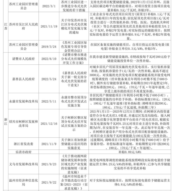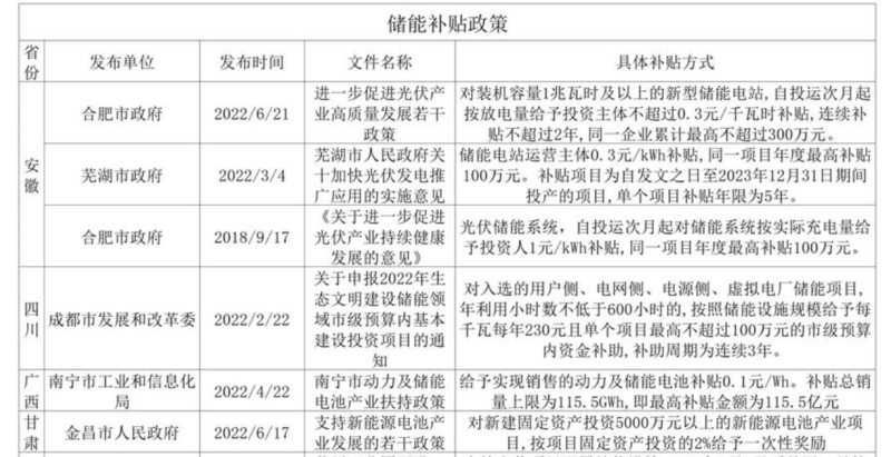 此前,2018年安徽合肥曾發(fā)布關(guān)于進(jìn)一步促進(jìn)光伏產(chǎn)業(yè)持續(xù)健康發(fā)展的意見,意見中指出光伏儲能系統(tǒng),自投運(yùn)次月起對儲能系統(tǒng)按實際充電量給予投資人1元/kWh補(bǔ)貼,同一項目年度最高補(bǔ)貼100萬元。