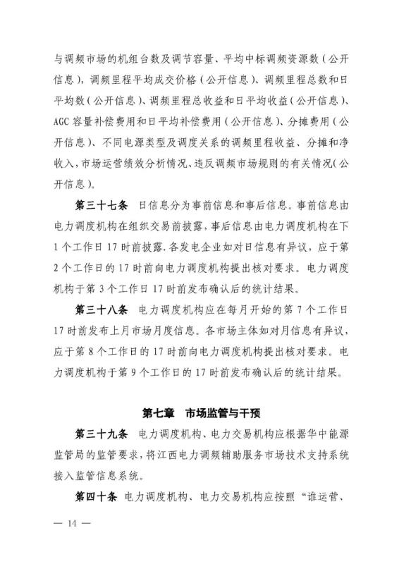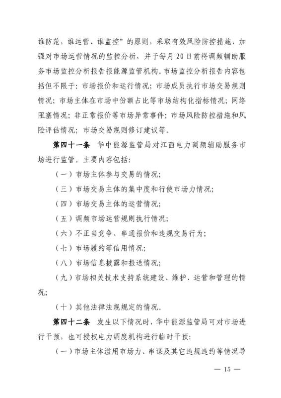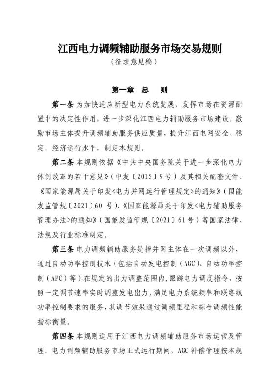 華中能源監(jiān)管局關(guān)于《江西電力調(diào)頻輔助服務(wù)市場(chǎng)交易規(guī)則(征求意見(jiàn)稿)》公開(kāi)征求意見(jiàn)的通知