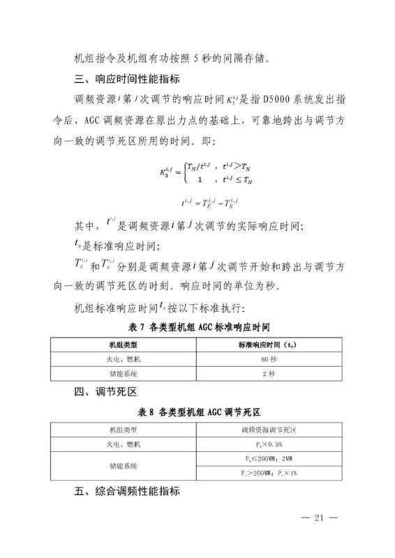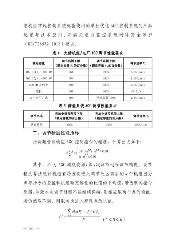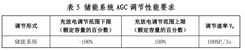 另外對(duì)儲(chǔ)能系統(tǒng)AGC調(diào)節(jié)性能提出了要求,如下: