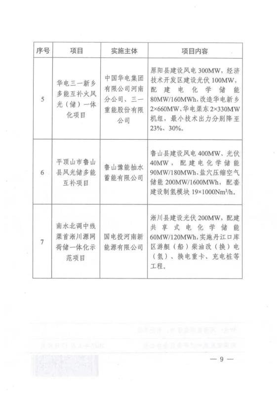 根據(jù)項(xiàng)目示范清單來看,本次共下發(fā)7個示范項(xiàng)目,規(guī)模為2.88GW,其中光伏規(guī)模為580MW,風(fēng)電規(guī)模為2.3GW,儲能配置為896MW/2992MWh,個別項(xiàng)目搭配壓縮儲能與配套制氫。本批示范項(xiàng)目涉及的企業(yè)包括國家電投、國家能源集團(tuán)、大唐、華電、華潤、中電建等央企,也包括三一、明陽智能、豫能控股、濮陽投資等國企或民企,50%的項(xiàng)目為聯(lián)合開發(fā)。