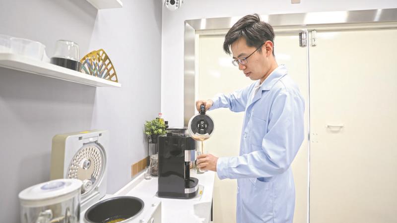 江蘇電科院專業(yè)人員使用直流咖啡機(jī)沏咖啡。