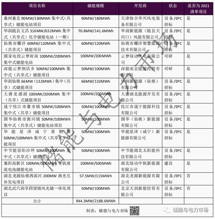 湖北目前已經(jīng)啟動(dòng)的儲(chǔ)能項(xiàng)目主要源自2021年9月發(fā)布《湖北省能源局關(guān)于2021年平價(jià)新能源項(xiàng)目審查結(jié)果的公示》(簡(jiǎn)稱”2021項(xiàng)目清單“)。該項(xiàng)目清單共包含了38個(gè)化學(xué)儲(chǔ)能電站,總規(guī)模超2.6GW/5.0GWh。其中,獨(dú)立儲(chǔ)能電站共36個(gè),風(fēng)光儲(chǔ)一體化項(xiàng)目1個(gè),漁光互補(bǔ)儲(chǔ)能項(xiàng)目1個(gè)。上述已啟動(dòng)的項(xiàng)目中,源自2021項(xiàng)目清單的項(xiàng)目共12個(gè),儲(chǔ)能容量達(dá)到836.8MW/1973.6MWh。具體項(xiàng)目名單詳見(jiàn):38個(gè)儲(chǔ)能項(xiàng)目,總計(jì)規(guī)模超2.6GW/5.0GWh,湖北發(fā)布2021年平價(jià)新能源項(xiàng)目審查結(jié)果。