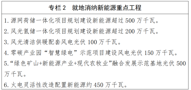 快速推進(jìn)產(chǎn)業(yè)融合風(fēng)光開發(fā)。結(jié)合礦區(qū)、沙漠生態(tài)治理,重點(diǎn)在沙漠、荒漠半荒漠、采煤沉陷區(qū)、復(fù)墾區(qū)、露天礦排土場等地區(qū),布局大型風(fēng)電、光伏發(fā)電項(xiàng)目。結(jié)合風(fēng)光氫儲一體化、火電靈活性改造,布局就近消納新能源發(fā)電項(xiàng)目。結(jié)合農(nóng)牧業(yè)、林業(yè)、建筑、交通、生態(tài)環(huán)境、鄉(xiāng)村振興等產(chǎn)業(yè)融合發(fā)展需求,布局產(chǎn)業(yè)融合新能源發(fā)電項(xiàng)目。優(yōu)先在工業(yè)負(fù)荷大、新能源條件好的達(dá)拉特、鄂托克等工業(yè)園區(qū),實(shí)施工業(yè)園區(qū)可再生能源替代、源網(wǎng)荷儲“一體化”等綠色供電工業(yè)園區(qū)建設(shè),布局可再生能源就近接入、就地消納示范項(xiàng)目。