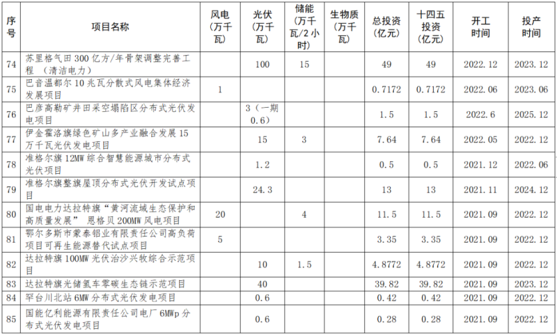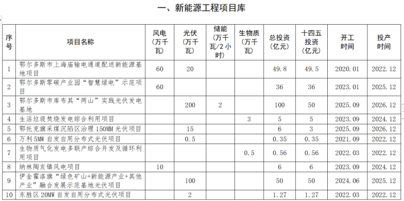 此外,根據(jù)鄂爾多斯此次發(fā)布的“十四五”新能源工程項(xiàng)目庫(附件查看):包含光伏3748.74萬千瓦、風(fēng)電1655萬千瓦、儲能487.15萬千瓦/2小時,預(yù)計十四五投資2630.73億元。