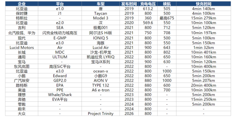全球部分高電壓平臺車型(圖片來源:東吳證券研報)