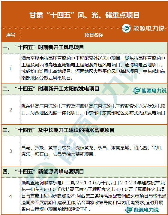 1月5日,甘肅人民政府發(fā)布《甘肅省“十四五”能源發(fā)展規(guī)劃》?!笆奈濉憋L(fēng)、光、儲重點項目如下: