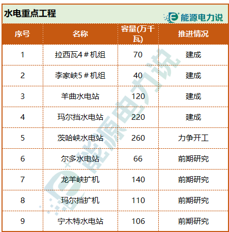 “十四五”重點能源項目如下: