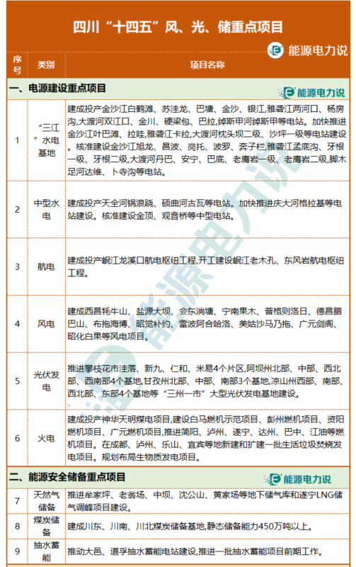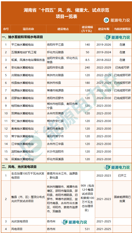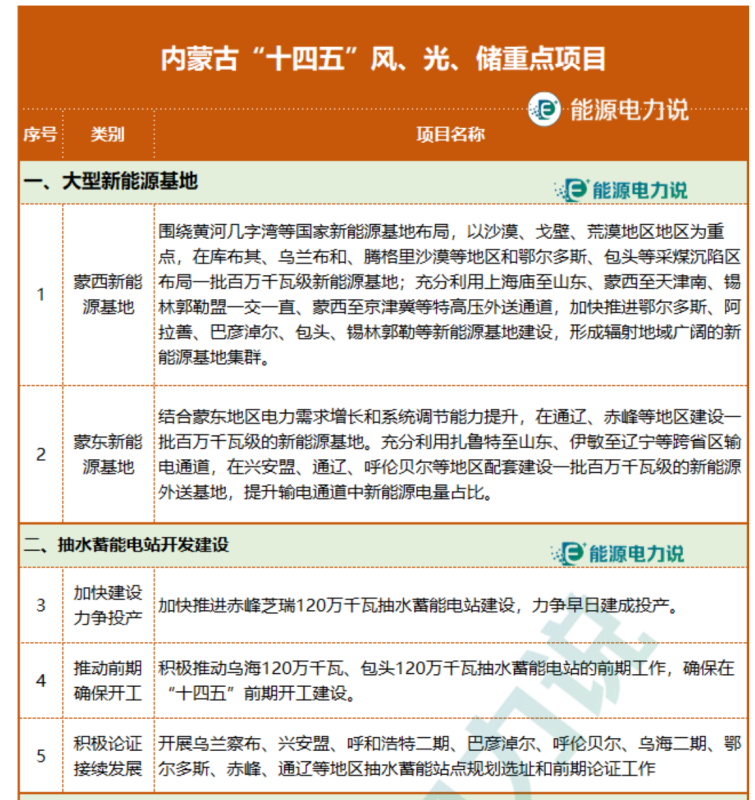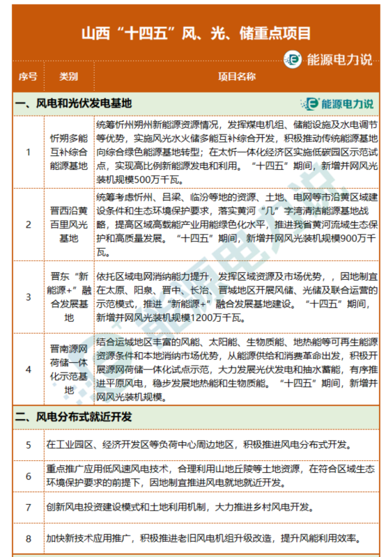 “十四五”風(fēng)、光、儲重點項目如下: