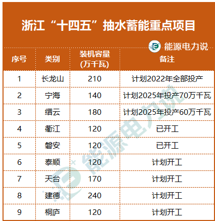 根據(jù)兩份規(guī)劃,新型儲能方面,包括火儲調(diào)頻示范項目、電網(wǎng)側(cè)獨立儲能項目區(qū)域示范、用戶側(cè)多元化儲能示范項目、新型儲能技術(shù)示范、自主核心產(chǎn)業(yè)應(yīng)用示范項目5個方面的重點項目。“十四五”期間,涉及在建、開工、計劃中的抽水蓄能項目9個。