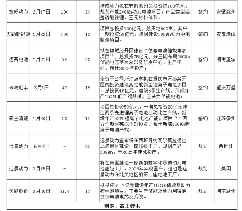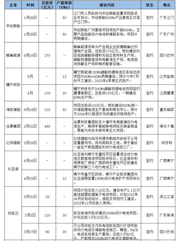 三、面向動(dòng)力及儲(chǔ)能兩大千億賽道,仍有電池新勢(shì)力涌入,并且提速大規(guī)模產(chǎn)能布局。