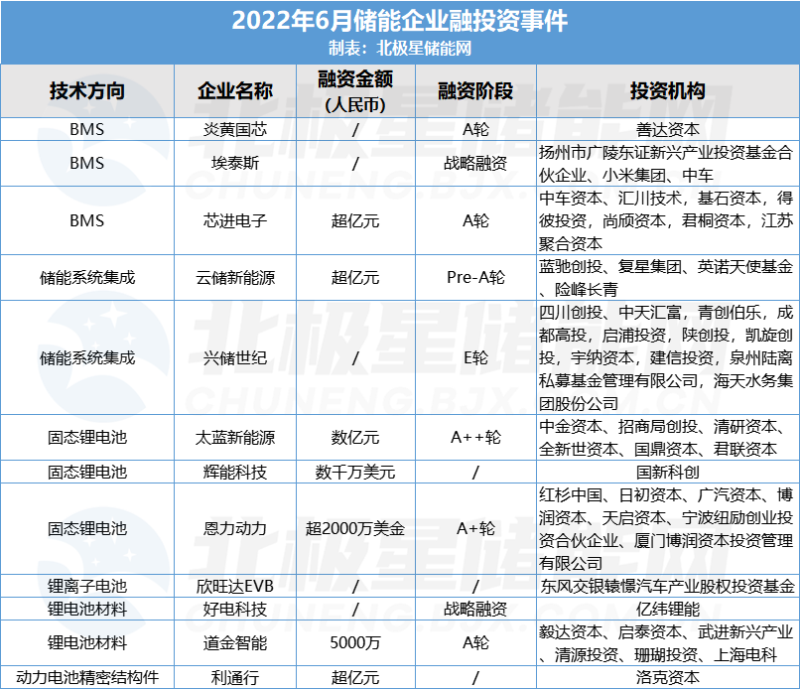 中國(guó)儲(chǔ)能網(wǎng)訊:2022年6月,共發(fā)生12起融投資事件,其中4起融資事件金額超億元。