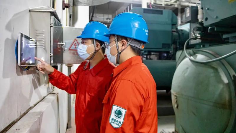 ▎供電員工查看萬地廣場中央空調(diào)水循環(huán)系統(tǒng)