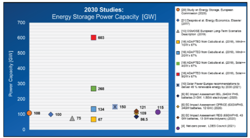 圖6不同研究報(bào)告對(duì)2030年歐洲部署儲(chǔ)能系統(tǒng)的要求(GW)
