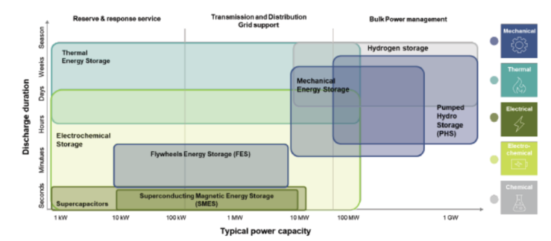 圖5 不同儲(chǔ)能技術(shù)的典型裝機(jī)容量和持續(xù)時(shí)間