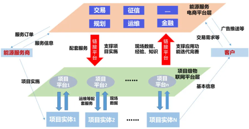 綜合能源服務(wù)市場(chǎng)具有長(zhǎng)產(chǎn)業(yè)鏈的顯著特征,能源服務(wù)商僅依靠自身資源形成貫通產(chǎn)業(yè)鏈的一站式服務(wù)能力很難,需要以平臺(tái)化實(shí)現(xiàn)產(chǎn)業(yè)鏈各環(huán)節(jié)資源的組合匹配和高效對(duì)接,實(shí)現(xiàn)對(duì)能源服務(wù)商的充分賦能。