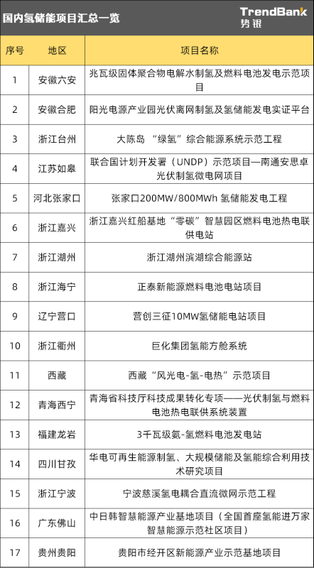 勢(shì)銀(TrendBank)認(rèn)為,氫儲(chǔ)能的應(yīng)用將不僅帶動(dòng)“制-儲(chǔ)-運(yùn)-用”全產(chǎn)業(yè)鏈的發(fā)展,更有潛力統(tǒng)籌電網(wǎng)、天然氣網(wǎng)和氫網(wǎng)。目前,國(guó)內(nèi)外企業(yè)已經(jīng)開(kāi)始在中國(guó)氫儲(chǔ)能發(fā)電領(lǐng)域積極開(kāi)展示范應(yīng)用。