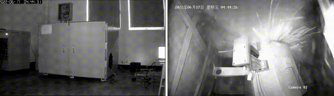 通過視頻監(jiān)控可以發(fā)現(xiàn),190Ah電芯在熱失控階段發(fā)生了猛烈的煙氣噴發(fā)和火焰噴射現(xiàn)象。此外,據(jù)實(shí)驗(yàn)現(xiàn)場觀察,雖然儀器無損傷,但電芯爆炸引發(fā)的氣流沖擊能夠?qū)?米外的物體造成明顯的破壞力。因此,進(jìn)行大容量高鎳電芯測試,為確保安全實(shí)驗(yàn)室必須具備足夠的泄爆面積。