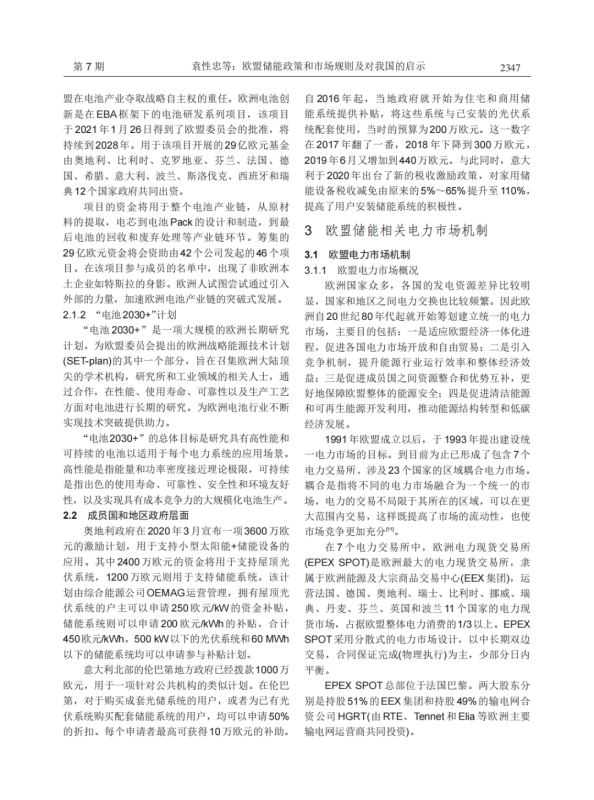 中國(guó)儲(chǔ)能網(wǎng)訊:作為構(gòu)建新型電力系統(tǒng)的關(guān)鍵技術(shù)支撐,儲(chǔ)能的發(fā)展離不開(kāi)政策環(huán)境的支持。歐盟作為電力市場(chǎng)化改革的先行者,在建立統(tǒng)一、充分競(jìng)爭(zhēng)的電力市場(chǎng)過(guò)程中積累了豐富的經(jīng)驗(yàn),目前已經(jīng)形成了成熟的電力現(xiàn)貨市場(chǎng)交易體系與電力平衡機(jī)制,為儲(chǔ)能構(gòu)建商業(yè)模式提供了有利條件。同時(shí)歐盟也不斷在頂層政策和電力市場(chǎng)規(guī)則上做出修改,旨在推動(dòng)儲(chǔ)能的規(guī)?;l(fā)展,為儲(chǔ)能在更大范圍內(nèi)參與電力市場(chǎng)創(chuàng)造有利條件,值得我國(guó)借鑒。