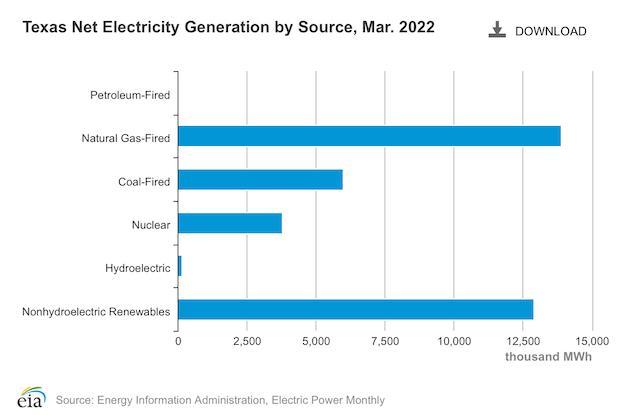 根據(jù)EIA說(shuō)明,風(fēng)能是得克薩斯州的主要電力來(lái)源之一。2021年,該州的風(fēng)力發(fā)電量約占美國(guó)全部風(fēng)力發(fā)電量的26%,連續(xù)16年排名全美第一。風(fēng)力發(fā)電在2014年首次超過(guò)了該州的核能發(fā)電,并在2019年首次超過(guò)了燃煤發(fā)電。ERCOT數(shù)據(jù)顯示,風(fēng)能發(fā)電量占據(jù)總電量的24.8%,僅次于天然氣的51%。