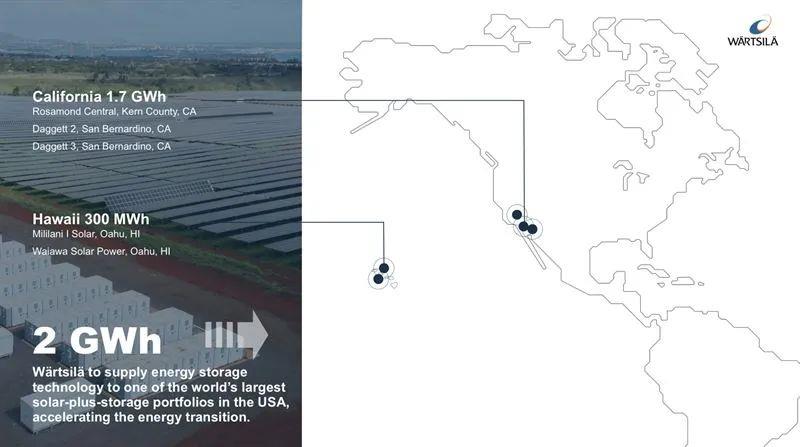 該投資組合包括 Daggett 2 和 Daggett 3 項目,它們共同代表了加利福尼亞州最大的共址光伏加儲能設(shè)施之一,太陽能光伏發(fā)電容量為 482 MWac,儲能容量為 275 MWac / 1.1 GWh。Daggett 項目位于加利福尼亞州的圣貝納迪諾,毗鄰一座退役的煤炭和天然氣工廠。交流耦合儲能系統(tǒng)將在日益動蕩的高峰期提供可再生能源,并幫助該州實現(xiàn)到 2045 年實現(xiàn) 100% 無碳電力的目標(biāo)。Daggett 3 的訂單已于 2021 年第三季度預(yù)訂給瓦錫蘭的訂單,而Daggett 2 的訂單已于 2021 年第四季度預(yù)訂。這兩個項目已開始施工,預(yù)計完工日期為 2023 年。