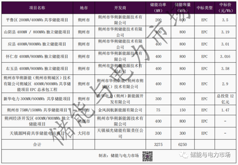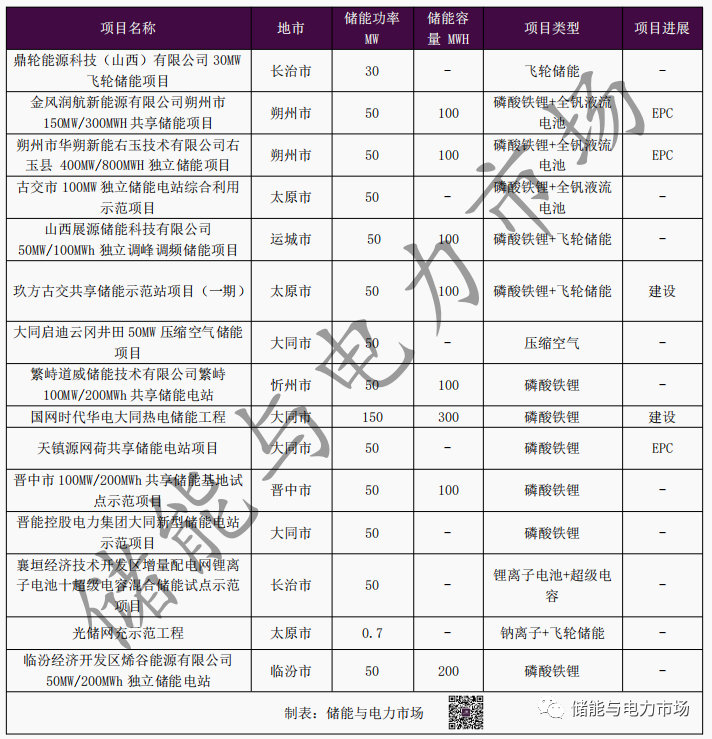 山西進(jìn)入EPC招標(biāo)階段的獨(dú)立儲能項(xiàng)目