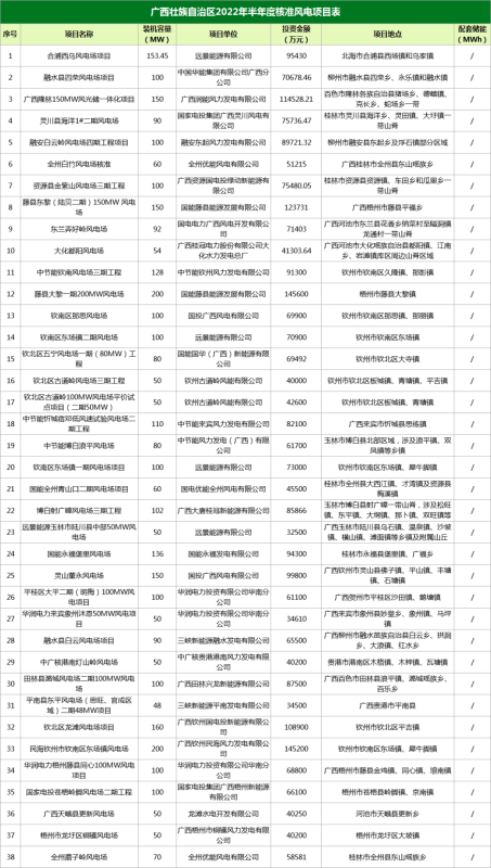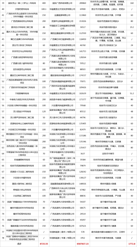 廣西核準(zhǔn)78個(gè)風(fēng)電項(xiàng)目,總規(guī)模8725.55MW,配套儲(chǔ)能1772.8MWh,總投資6587837.15萬元。
