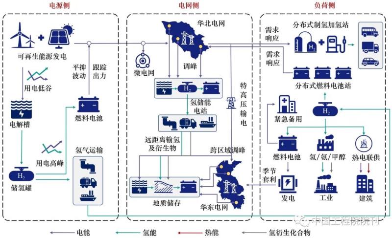 ③氫儲(chǔ)能作為電力系統(tǒng)“源網(wǎng)荷”多側(cè)的關(guān)鍵靈活性資源,可促進(jìn)“源網(wǎng)荷儲(chǔ)”各環(huán)節(jié)協(xié)調(diào)互動(dòng),實(shí)現(xiàn)新型電力系統(tǒng)在不同時(shí)間尺度上的電力電量平衡;