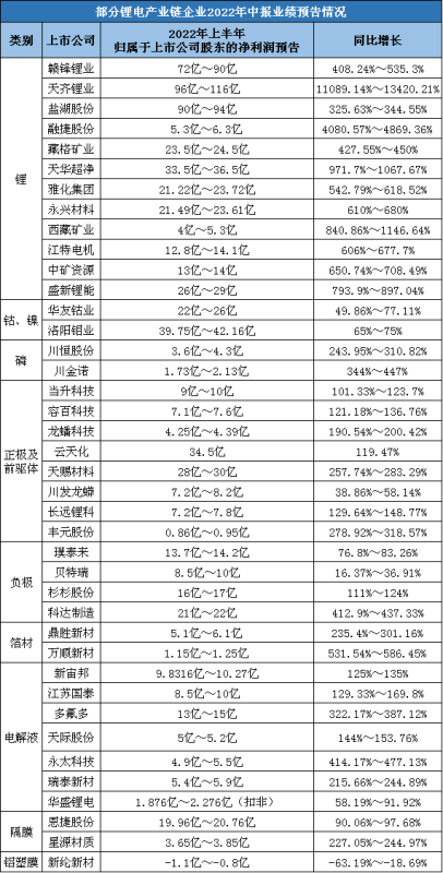 通過觀察鋰電池產(chǎn)業(yè)鏈部分上市企業(yè)上半年業(yè)績預(yù)告情況,可一窺市場(chǎng)些許動(dòng)向。