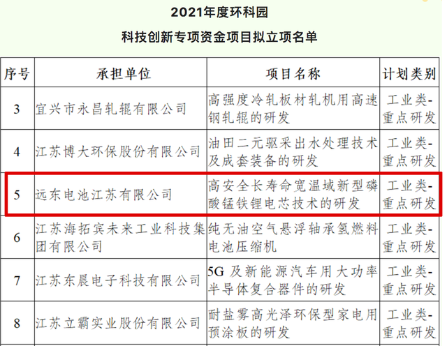 中國儲能網(wǎng)訊:日前,中國宜興環(huán)??萍脊I(yè)園管理委員會對外公布2021年度宜興市科技創(chuàng)新專項資金項目名單,遠東智慧能源股份有限公司(簡稱:遠東股份,股票代碼:600869)旗下遠東電池江蘇有限公司主導(dǎo)的“高安全長壽命寬溫域新型磷酸錳鐵鋰電芯技術(shù)的研發(fā)”項目順利入圍。