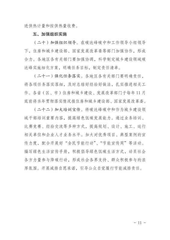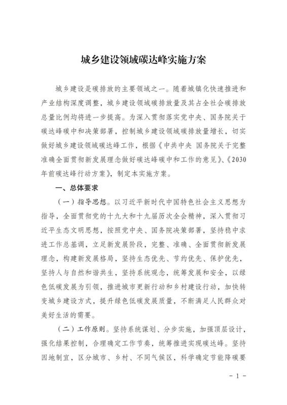 《城鄉(xiāng)建設領域碳達峰實施方案》已經(jīng)碳達峰碳中和工作領導小組審議通過,現(xiàn)印發(fā)給你們,請認真貫徹落實。