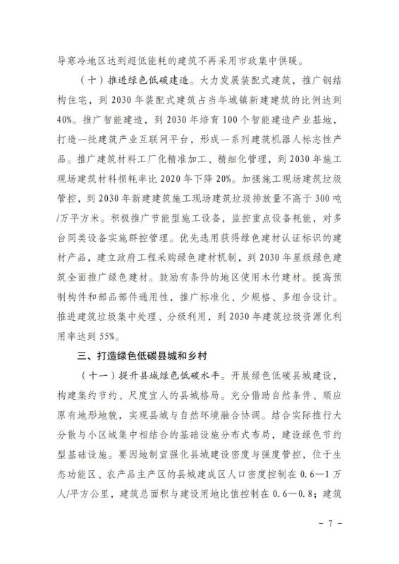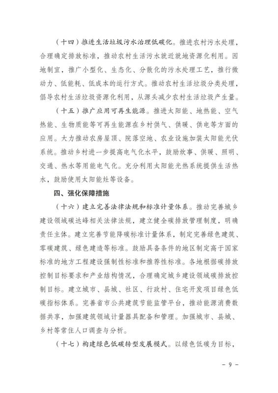 印發(fā)城鄉(xiāng)建設領域碳達峰實施方案的通知