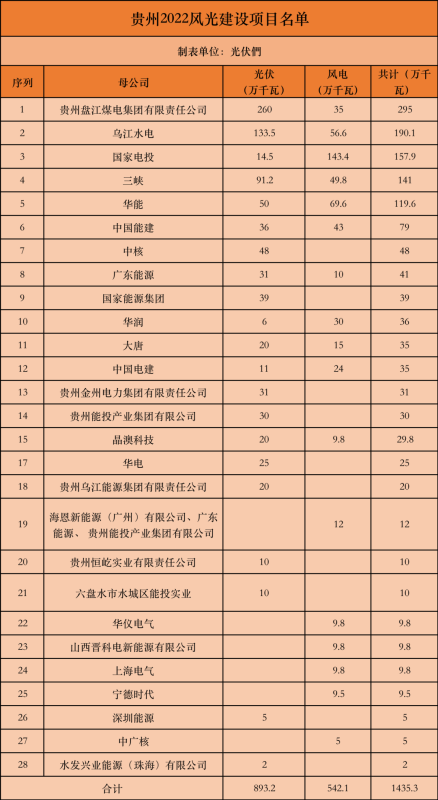 根據(jù)光伏們統(tǒng)計(jì),在此次光伏項(xiàng)目建設(shè)名單中,貴州盤江煤電集團(tuán)、烏江水電、三峽集團(tuán)分別以260萬(wàn)千瓦、133.5萬(wàn)千瓦、92.1萬(wàn)千瓦位居前三。其中貴州盤江煤電集團(tuán)有限責(zé)任公司是從屬于貴州省國(guó)資委的國(guó)有控股公司,貴州烏江水電是由中國(guó)華電集團(tuán)有限公司(51%)和貴州烏江能源投資有限公司(49%)聯(lián)合控股的子公司。