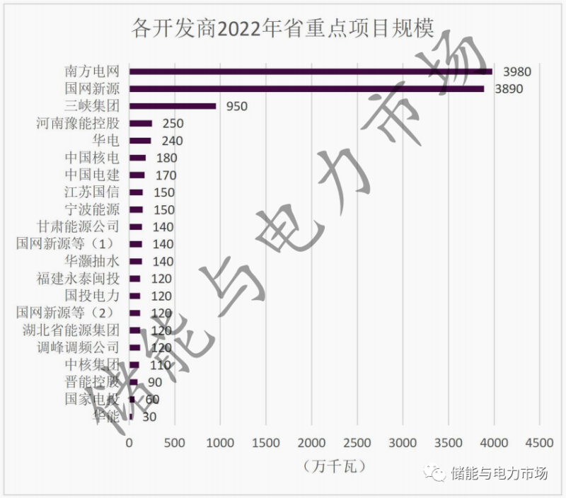 就開發(fā)商來看,國網(wǎng)新源和南方電網(wǎng)依舊主導(dǎo)著國內(nèi)抽蓄項目的開發(fā)。其中國網(wǎng)新源參與的項目規(guī)模達41.5GW,占比遠超全國已公布項目的三分之一,投資額總額達2530.17億元。南方電網(wǎng)參與的項目規(guī)模達39.8GW,投資額也已達2295.8億元。此外,三峽集團憑借其水電開發(fā)的經(jīng)驗和優(yōu)勢,也在積極的參與到抽蓄電站的開發(fā)建設(shè)中。
