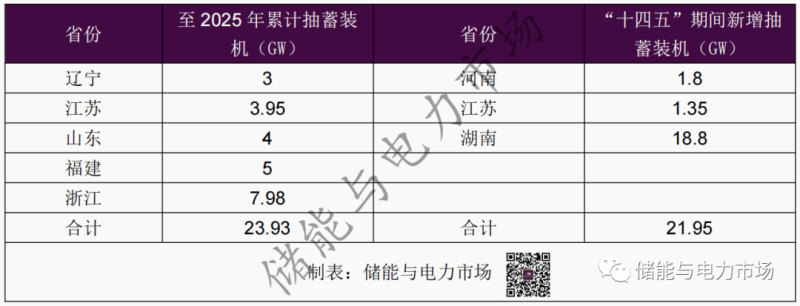 表:各地“十四五”期間或“十四五”末期抽蓄裝機目標