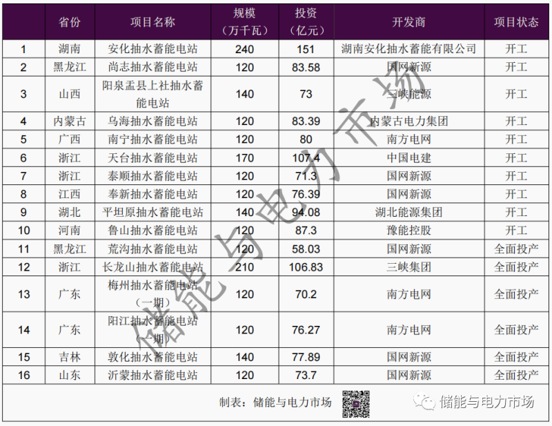 據(jù)儲能與電力市場統(tǒng)計,2022年以來,開工和投產(chǎn)的抽水蓄能項目已達16個,總規(guī)模22.4GW,項目的總投資額超1370億元。