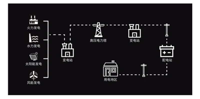 從傳統(tǒng)意義講,電一般都是由發(fā)電廠來(lái)發(fā)出的,主要包含水力發(fā)電,風(fēng)力發(fā)電,火力發(fā)電和太陽(yáng)能發(fā)電等等。發(fā)出來(lái)的電經(jīng)過(guò)高壓線路傳輸?shù)接秒姸?由于遠(yuǎn)距離的傳輸會(huì)存在著一些損耗,損耗來(lái)源主要為線路電流的大小,功率不變的情況下,電壓越高,電流就越小,損耗也就越小,因此根據(jù)不同輸電線路的要求,發(fā)電端的電由變電站將電壓升高,通過(guò)輸電站傳輸?shù)接秒姷貐^(qū)。然后經(jīng)過(guò)用電地區(qū)的降壓變電站的逐級(jí)降壓,最后通過(guò)配電傳到用戶家中。
