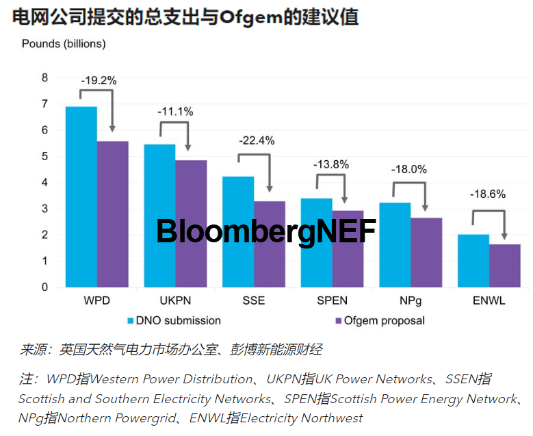 Ofgem提議,將允許的股本回報率從上個監(jiān)管期的6.0%削減至4.75%,同時還將DNO提議的總支出從252億英鎊削減至209億英鎊(249億美元),降幅達(dá)17%。