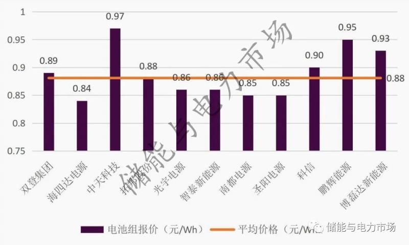 就中標(biāo)價格來看,電池組的報價區(qū)間為0.84~0.97元/Wh,按前8名中標(biāo)候選人所占份額計算其平均價格為0.88元/Wh。其中,中天科技報價最高,為0.97元/Wh;海四達(dá)電源報價最低,為0.84元/Wh。此次平均中標(biāo)價格同中國鐵塔2021年備電用磷酸鐵鋰電池產(chǎn)品集采項目0.697元/Wh的平均中標(biāo)報價相比,有明顯上漲,漲幅為26%。