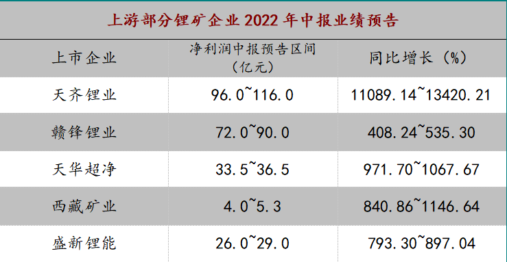 上游原材料價(jià)格高位運(yùn)行之下,鋰礦企業(yè)業(yè)績?cè)鏊袤@人。