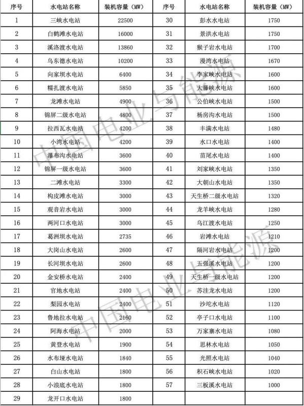 據(jù)最新統(tǒng)計(jì),至此中國(guó)大陸已投產(chǎn)(含部分投產(chǎn))百萬(wàn)千瓦以上常規(guī)水電站達(dá)到57座(全名單見文末統(tǒng)計(jì)表)。