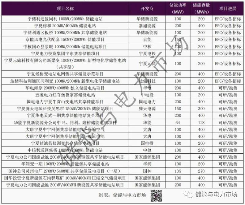 表:寧夏已啟動的獨立式儲能項目