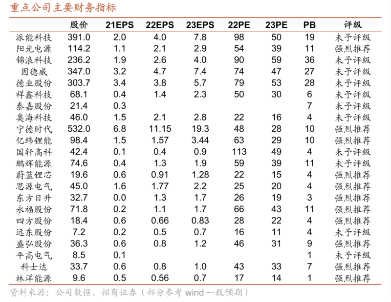 推薦與關(guān)注派能科技、陽光電源、錦浪科技、固德威、德業(yè)股份、祥鑫科技、泰嘉股份、奧海科技、寧德時(shí)代、億緯鋰能、國軒高科、鵬輝能源、蔚藍(lán)鋰芯、思源電氣、東方日升、永福股份、四方股份、遠(yuǎn)東股份、盛弘股份、平高電氣、科士達(dá)、林洋能源。