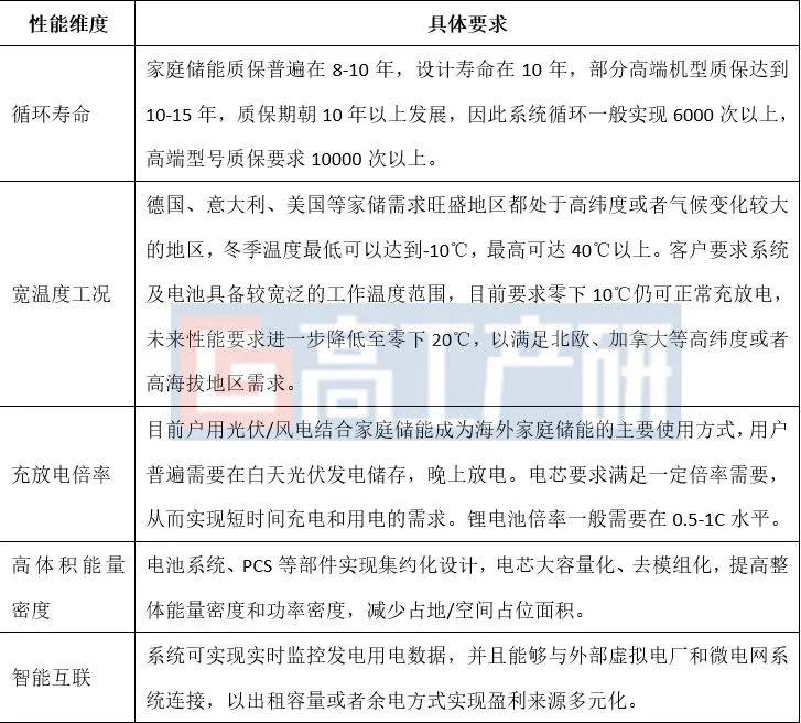 戶用家儲(chǔ)應(yīng)用于小型戶用備電場(chǎng)合,儲(chǔ)能系統(tǒng)帶電量普遍在5-20KWh。產(chǎn)品要求方面,戶用家儲(chǔ)產(chǎn)品在電氣安全和機(jī)械安全得到滿足的前提下,性能要求集中在長(zhǎng)循環(huán)壽命、寬溫度工況、充放電倍率和高體積能量密度等方面。產(chǎn)品平臺(tái)高壓化是戶用家儲(chǔ)產(chǎn)品發(fā)展重要趨勢(shì)。高壓化可降低電流,進(jìn)而減少放熱量,提升放電效率和安全性。隨著電動(dòng)車全球范圍普及、居民電價(jià)成本持續(xù)提升,戶用家儲(chǔ)系統(tǒng)容量有逐步增加的趨勢(shì),系統(tǒng)容量有望逐步從10KWh以下提升至15KWh以上,戶用PCS功率也將從3KW、5KW提升到8KW乃至三相10KW以上迭代。