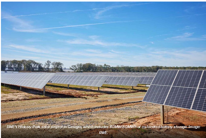 德國萊茵集團 (RWE)在佐治亞州部署的Hickory Park太陽能發(fā)電項目,其中配套部署40MW/80MWh電池儲能系統(tǒng)