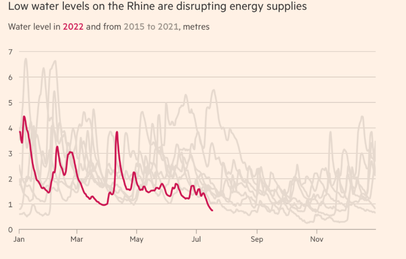 水位下降也令部分燃料運(yùn)輸船無法行駛。德國萊茵河本是將煤炭從鹿特丹運(yùn)到德國南部最便宜、最簡單的方式,但由于水位下降太快,使德國部分火電廠的燃料供應(yīng)受到影響。