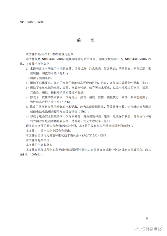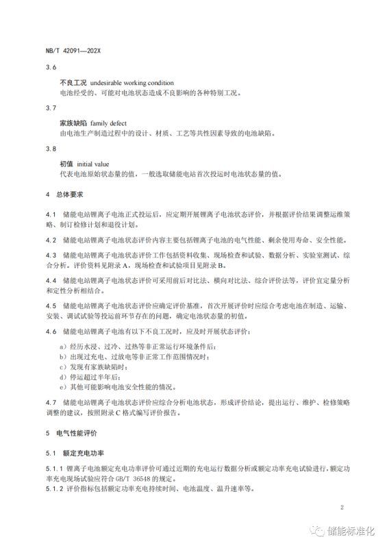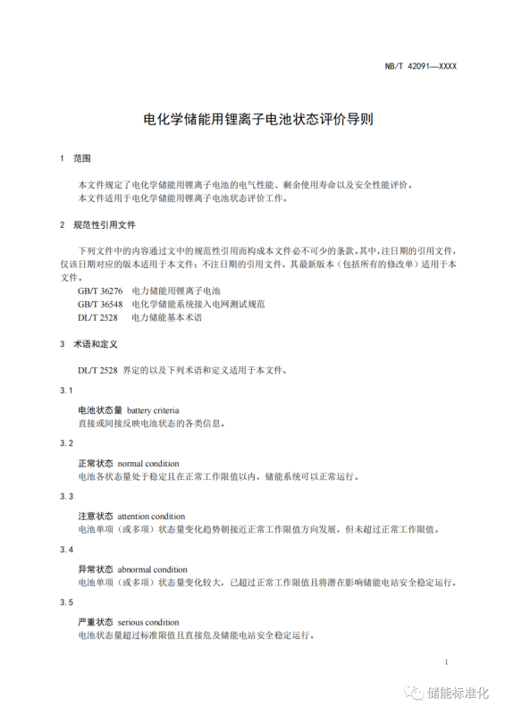 能源行業(yè)標準《電化學(xué)儲能用鋰離子電池狀態(tài)評價導(dǎo)則》征求意見