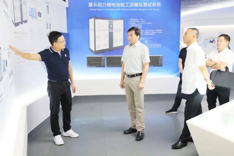 中國儲能網(wǎng)訊:為進一步推動城市新型儲能發(fā)展,促進區(qū)域清潔能源消納,構(gòu)建清潔低碳、安全高效能源體系,助力實現(xiàn)碳達峰、碳中和目標,8月5日,南平市人民政府副市長何明星,南平武夷發(fā)展集團黨委書記、董事長江訓強,南平市交通局副局長熊秀旺,南平武夷發(fā)展集團黨委專職副書記張捷等領(lǐng)導一行,蒞臨星云股份考察調(diào)研。星云股份董事長李有財、總裁商務(wù)助理張俞陪同考察,詳細介紹了公司鋰電池檢測技術(shù)、儲能技術(shù)的研發(fā)與成果,并圍繞“光儲充檢智能超充站”的建設(shè)、投資、推廣等與南平市領(lǐng)導一行進行深入交流。