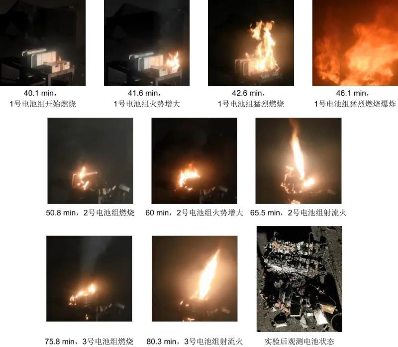 圖 10 多個鋰離子電池組燃燒爆炸實驗照片