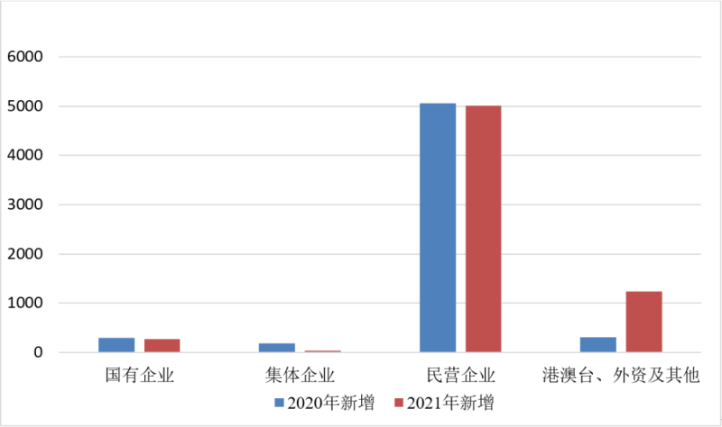 圖3 2020年、2021年不同經(jīng)濟性質承裝(修、試)企業(yè)數(shù)量變化情況