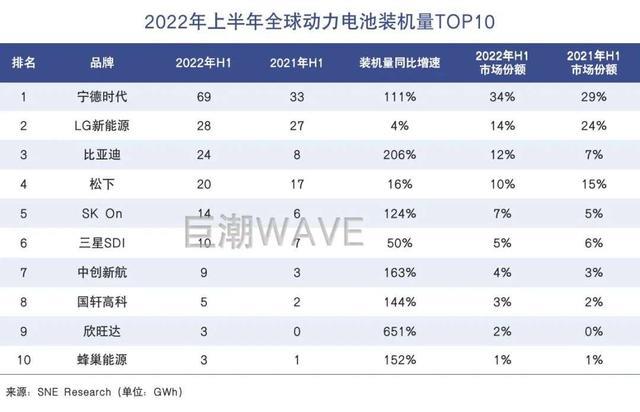 根據(jù)SNE Research數(shù)據(jù),寧德時代以16.2GWh的裝機量位居海外市場第三位,市占率為18%,遠景動力、欣旺達、比亞迪分別位列第6、第8和第10位。尤其欣旺達,海外市場裝機量從去年上半年的0.1GWh增至0.6GWh,增長十分迅猛。